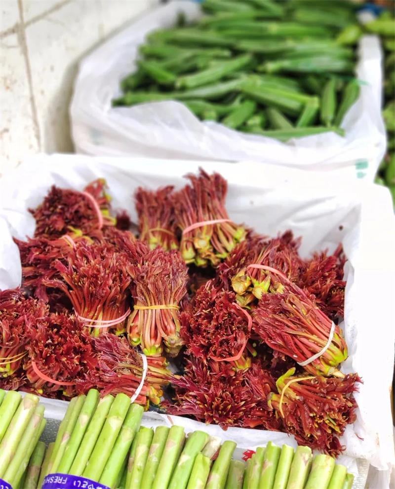 最后,不能不说说这“金贵”的香椿头,刚上市的香椿头都是按两称的,绝对是野菜中的贵族。