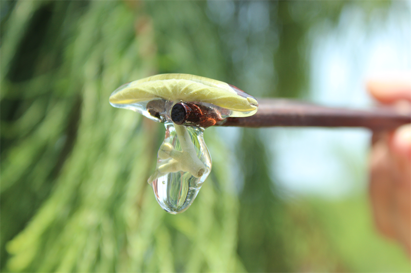 别看只是掐个嫩芽,采摘莼菜可是一门辛苦的技术活。莼菜滑滑腻腻,采摘起来有一定的难度,出手要准而快。一片片掐下嫩芽,就这样一采就是一天,那双始终浸在水里的手被泡的发白。而且新鲜的莼菜采集后能存活20个小时左右,所以很是珍贵。