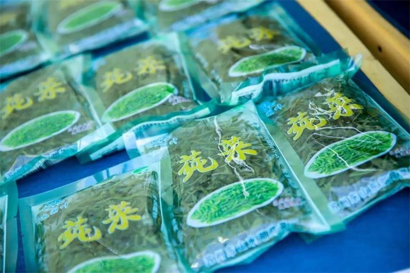 除了最珍贵的芽尖,莼菜根据大小、叶片,也会分成好几个等级。M级是有叶有芽的,S级除了内销以外,还要出口日本和韩国。还有一个是L级,叶片比较大,嫩芽去掉,剩下的嫩叶称为L级。