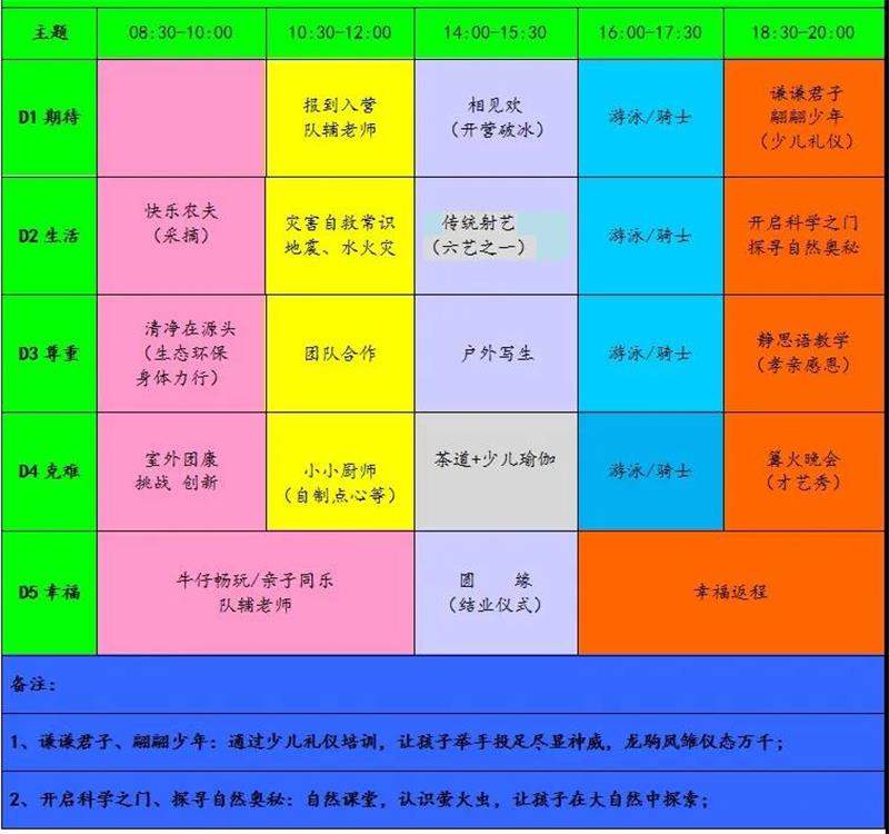 (周日开营--周四结营)