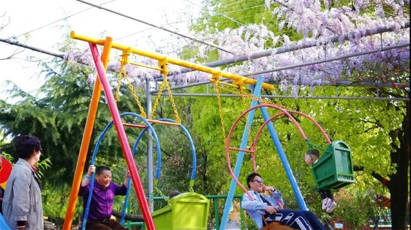 暖春四月,也是紫藤花绽放的季节,安住的紫藤园内,一串串紫藤花从棚架垂落,风一吹,深深浅浅的紫色花瓣随风摇曳,波光滟潋,好不迷人。